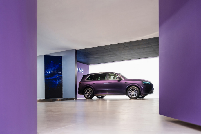 在8月26日开箱仪式启动后,本次“夜紫当道”主题定展将持续至8月31日。为期6天的主题定展以问界M8纯电版新色“夜紫”为核心元素,将现场打造为沉浸式紫色潮流空间,装置主色调与“夜紫”车漆交相辉映,迅速成为成都时尚潮流新晋打卡点。