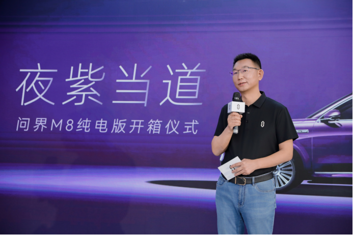 在活动现场,何利扬与问界M8纯电版首批大定车主代表黎先生共同完成了本次活动的开箱仪式,黎先生现场分享了选择问界M8纯电版的理由:“我本身是问界M8 增程版的车主,家人也都非常喜欢问界M8。纯电版发布之后,无论是安全、智能,还是续航,都完全满足了我的期待。并且,问界M8纯电版不论是外观设计还是车内做工,都精致感十足,尤其是这次新推出的‘夜紫’车色和‘松露棕’内饰我特别喜欢,所以纯电版上市后我立马就定了!”